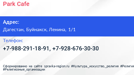 Park Cafe по адресу Дагестан, Буйнакск, Ленина, 1/1 в дальнейшем Организация, размещена в следующих категориях: