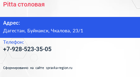 Pitta, столовая по адресу Дагестан, Буйнакск, Чкалова, 23/1 в дальнейшем Организация, размещена в следующих категориях: