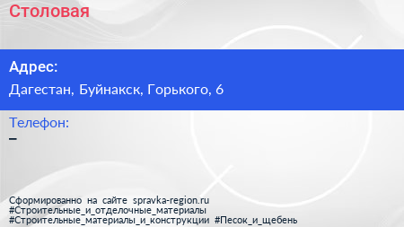 Столовая по адресу Дагестан, Буйнакск, Горького, 6 в дальнейшем Организация, размещена в следующих категориях: