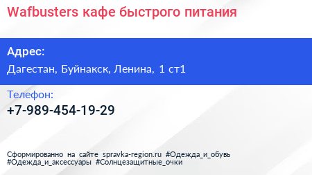 Wafbusters, кафе быстрого питания по адресу Дагестан, Буйнакск, Ленина, 1 ст1 в дальнейшем Организация, размещена в следующих категориях: