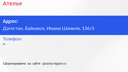Ателье по адресу Дагестан, Буйнакск, Имама Шамиля, 136/3 в дальнейшем Организация, размещена в следующих категориях:
