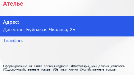 Ателье по адресу Дагестан, Буйнакск, Чкалова, 2Б в дальнейшем Организация, размещена в следующих категориях: