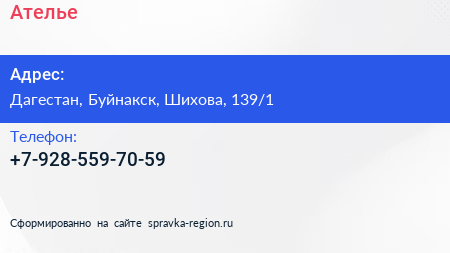 Ателье по адресу Дагестан, Буйнакск, Шихова, 139/1 в дальнейшем Организация, размещена в следующих категориях: