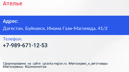 Ателье по адресу Дагестан, Буйнакск, Имама Гази-Магомеда, 41/2 в дальнейшем Организация, размещена в следующих категориях: