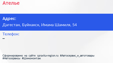 Ателье по адресу Дагестан, Буйнакск, Имама Шамиля, 54 в дальнейшем Организация, размещена в следующих категориях: