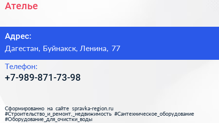 Ателье по адресу Дагестан, Буйнакск, Ленина, 77 в дальнейшем Организация, размещена в следующих категориях: