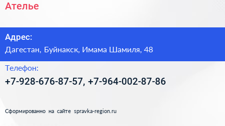 Ателье по адресу Дагестан, Буйнакск, Имама Шамиля, 48 в дальнейшем Организация, размещена в следующих категориях: