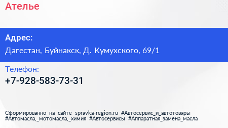 Ателье по адресу Дагестан, Буйнакск, Д. Кумухского, 69/1 в дальнейшем Организация, размещена в следующих категориях: