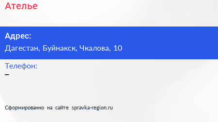 Ателье по адресу Дагестан, Буйнакск, Чкалова, 10 в дальнейшем Организация, размещена в следующих категориях:
