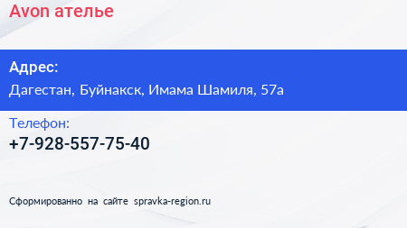 Avon, ателье по адресу Дагестан, Буйнакск, Имама Шамиля, 57а в дальнейшем Организация, размещена в следующих категориях: