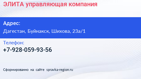 ЭЛИТА, управляющая компания по адресу Дагестан, Буйнакск, Шихова, 23а/1 в дальнейшем Организация, размещена в следующих категориях: