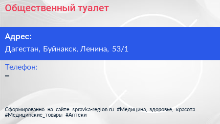 Общественный туалет по адресу Дагестан, Буйнакск, Ленина, 53/1 в дальнейшем Организация, размещена в следующих категориях: