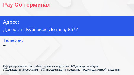 Pay-Go, терминал по адресу Дагестан, Буйнакск, Ленина, 85/7 в дальнейшем Организация, размещена в следующих категориях: