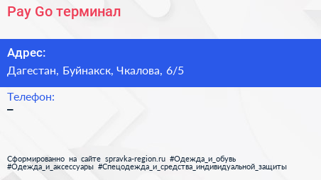 Pay-Go, терминал по адресу Дагестан, Буйнакск, Чкалова, 6/5 в дальнейшем Организация, размещена в следующих категориях: