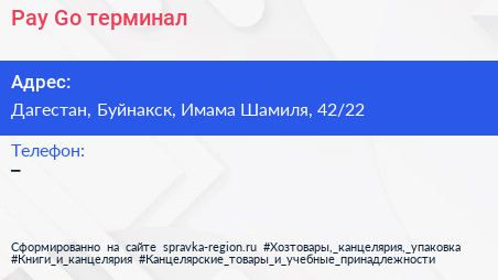 Pay-Go, терминал по адресу Дагестан, Буйнакск, Имама Шамиля, 42/22 в дальнейшем Организация, размещена в следующих категориях: