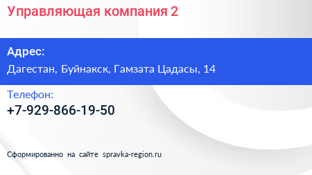 Управляющая компания №2 по адресу Дагестан, Буйнакск, Гамзата Цадасы, 14 в дальнейшем Организация, размещена в следующих категориях:
