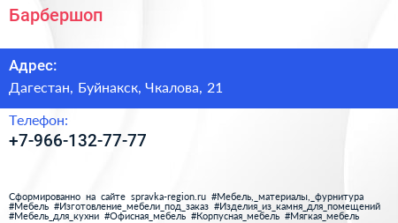 Барбершоп по адресу Дагестан, Буйнакск, Чкалова, 21 в дальнейшем Организация, размещена в следующих категориях: