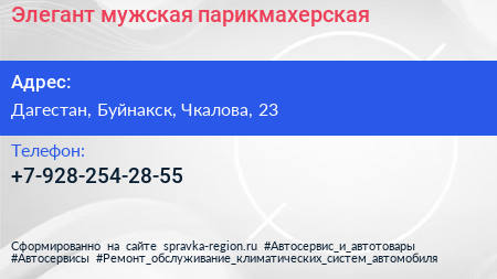 Элегант, мужская парикмахерская по адресу Дагестан, Буйнакск, Чкалова, 23 в дальнейшем Организация, размещена в следующих категориях: