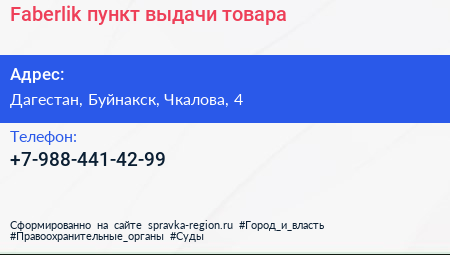 Faberlik, пункт выдачи товара по адресу Дагестан, Буйнакск, Чкалова, 4 в дальнейшем Организация, размещена в следующих категориях:
