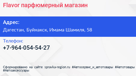 Flavor, парфюмерный магазин по адресу Дагестан, Буйнакск, Имама Шамиля, 58 в дальнейшем Организация, размещена в следующих категориях: