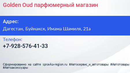 Golden Oud, парфюмерный магазин по адресу Дагестан, Буйнакск, Имама Шамиля, 21а в дальнейшем Организация, размещена в следующих категориях: