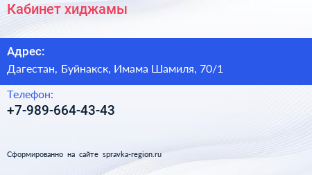 Адрес: Дагестан, Буйнакск, Имама Шамиля, 132а/3