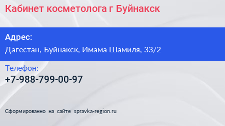 Кабинет косметолога, г. Буйнакск по адресу Дагестан, Буйнакск, Имама Шамиля, 33/2 в дальнейшем Организация, размещена в следующих категориях: