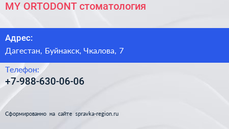 MY ORTODONT, стоматология по адресу Дагестан, Буйнакск, Чкалова, 7 в дальнейшем Организация, размещена в следующих категориях: