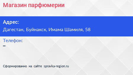 Магазин парфюмерии по адресу Дагестан, Буйнакск, Имама Шамиля, 58 в дальнейшем Организация, размещена в следующих категориях:
