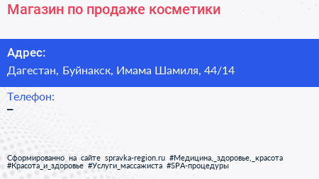 Магазин по продаже косметики по адресу Дагестан, Буйнакск, Имама Шамиля, 44/14 в дальнейшем Организация, размещена в следующих категориях: