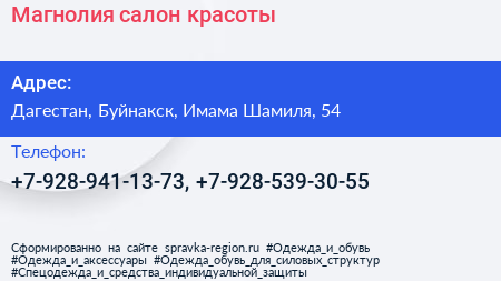 Магнолия, салон красоты по адресу Дагестан, Буйнакск, Имама Шамиля, 54 в дальнейшем Организация, размещена в следующих категориях: