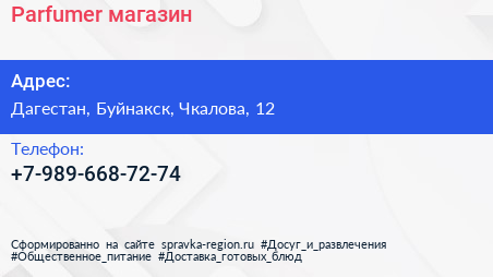 Parfumer, магазин по адресу Дагестан, Буйнакск, Чкалова, 12 в дальнейшем Организация, размещена в следующих категориях: