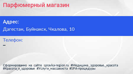 Парфюмерный магазин по адресу Дагестан, Буйнакск, Чкалова, 10 в дальнейшем Организация, размещена в следующих категориях: