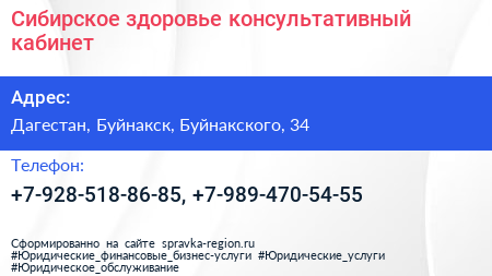 Сибирское здоровье, консультативный кабинет по адресу Дагестан, Буйнакск, Буйнакского, 34 в дальнейшем Организация, размещена в следующих категориях: