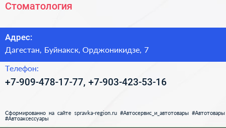 Стоматология по адресу Дагестан, Буйнакск, Орджоникидзе, 7 в дальнейшем Организация, размещена в следующих категориях: