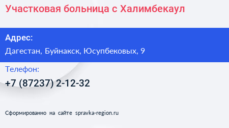 Участковая больница с. Халимбекаул по адресу Дагестан, Буйнакск, Юсупбековых, 9 в дальнейшем Организация, размещена в следующих категориях: