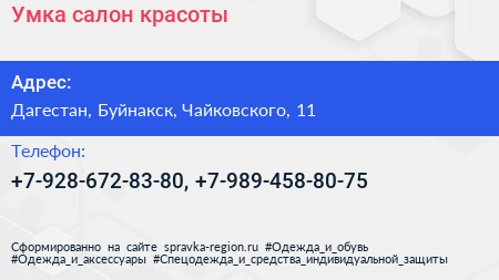 Умка, салон красоты по адресу Дагестан, Буйнакск, Чайковского, 11 в дальнейшем Организация, размещена в следующих категориях: