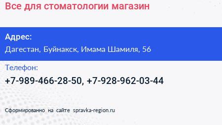 Все для стоматологии, магазин по адресу Дагестан, Буйнакск, Имама Шамиля, 56 в дальнейшем Организация, размещена в следующих категориях: