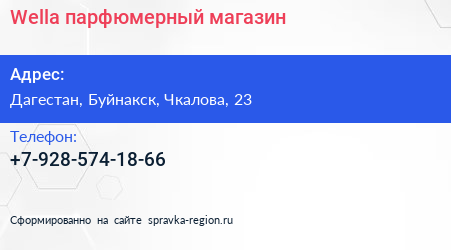 Wella, парфюмерный магазин по адресу Дагестан, Буйнакск, Чкалова, 23 в дальнейшем Организация, размещена в следующих категориях: