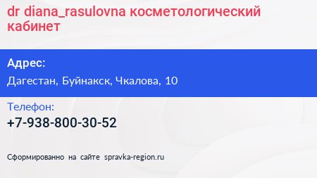 dr.diana_rasulovna, косметологический кабинет по адресу Дагестан, Буйнакск, Чкалова, 10 в дальнейшем Организация, размещена в следующих категориях: