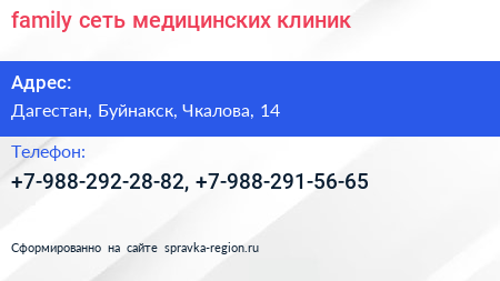 family, сеть медицинских клиник по адресу Дагестан, Буйнакск, Чкалова, 14 в дальнейшем Организация, размещена в следующих категориях: