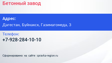 Бетонный завод по адресу Дагестан, Буйнакск, Газимагомеда, 3 в дальнейшем Организация, размещена в следующих категориях: