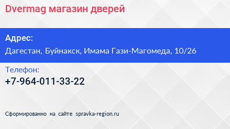 Dvermag, магазин дверей по адресу Дагестан, Буйнакск, Имама Гази-Магомеда, 10/26 в дальнейшем Организация, размещена в следующих категориях: