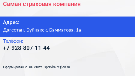 Саман, страховая компания по адресу Дагестан, Буйнакск, Бамматова, 1а в дальнейшем Организация, размещена в следующих категориях: