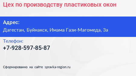 Цех по производству пластиковых окон по адресу Дагестан, Буйнакск, Имама Гази-Магомеда, 3а в дальнейшем Организация, размещена в следующих категориях: