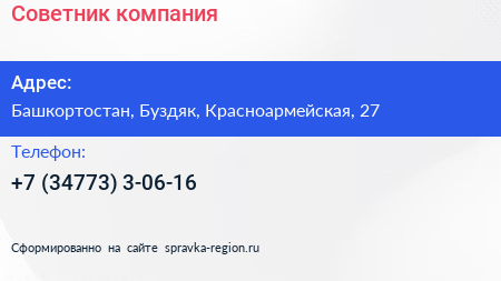 Советник, компания по адресу Башкортостан, Буздяк, Красноармейская, 27 в дальнейшем Организация, размещена в следующих категориях: