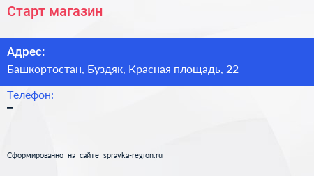 Старт, магазин по адресу Башкортостан, Буздяк, Красная площадь, 22 в дальнейшем Организация, размещена в следующих категориях: