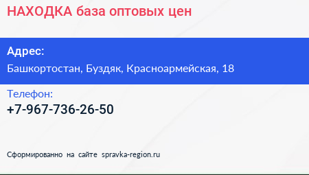НАХОДКА, база оптовых цен по адресу Башкортостан, Буздяк, Красноармейская, 18 в дальнейшем Организация, размещена в следующих категориях: