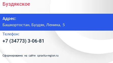 Адрес: Башкортостан, Буздяк, Ленина, 7