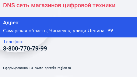 DNS, сеть магазинов цифровой техники по адресу Самарская область, Чапаевск, улица Ленина, 99 в дальнейшем Организация, размещена в следующих категориях: